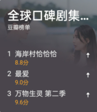 豆瓣评分达到9.0,更是直接冲上豆瓣热榜第二。比近期爆火的韩素希的韩剧《我的名字》还高。